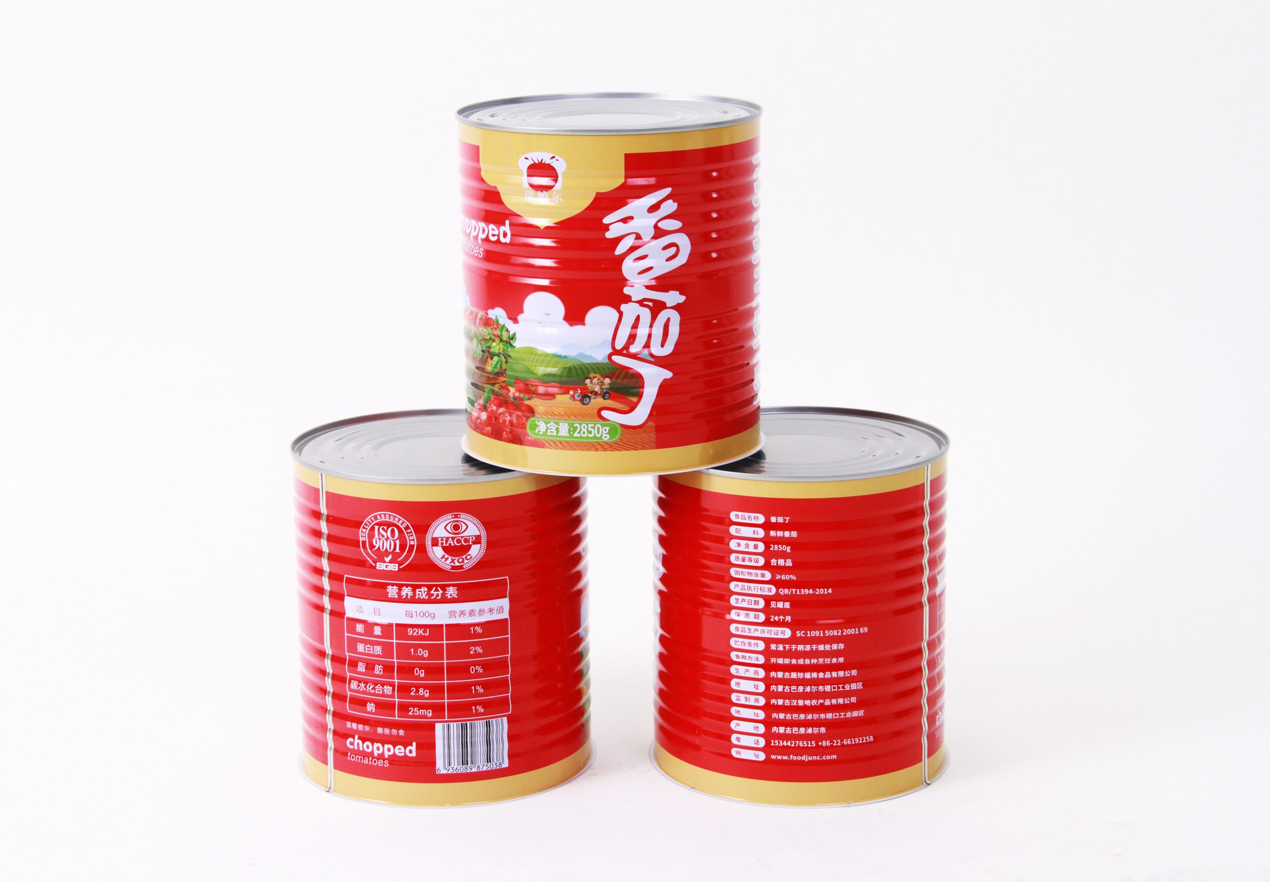 - 番茄丁尺寸:20mm*20mm 规格:2.85kg 配料:新鲜番茄 固形物含量:固形物含量≥60% 包装:马口铁罐包装 保质期:24个月 储存条件:常温避光储存